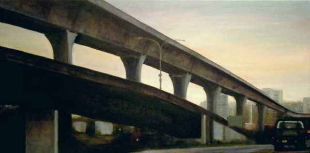 be a grouping of found objects, or the view from a freeway in transit to a greater destination. An emerging artist, she has most